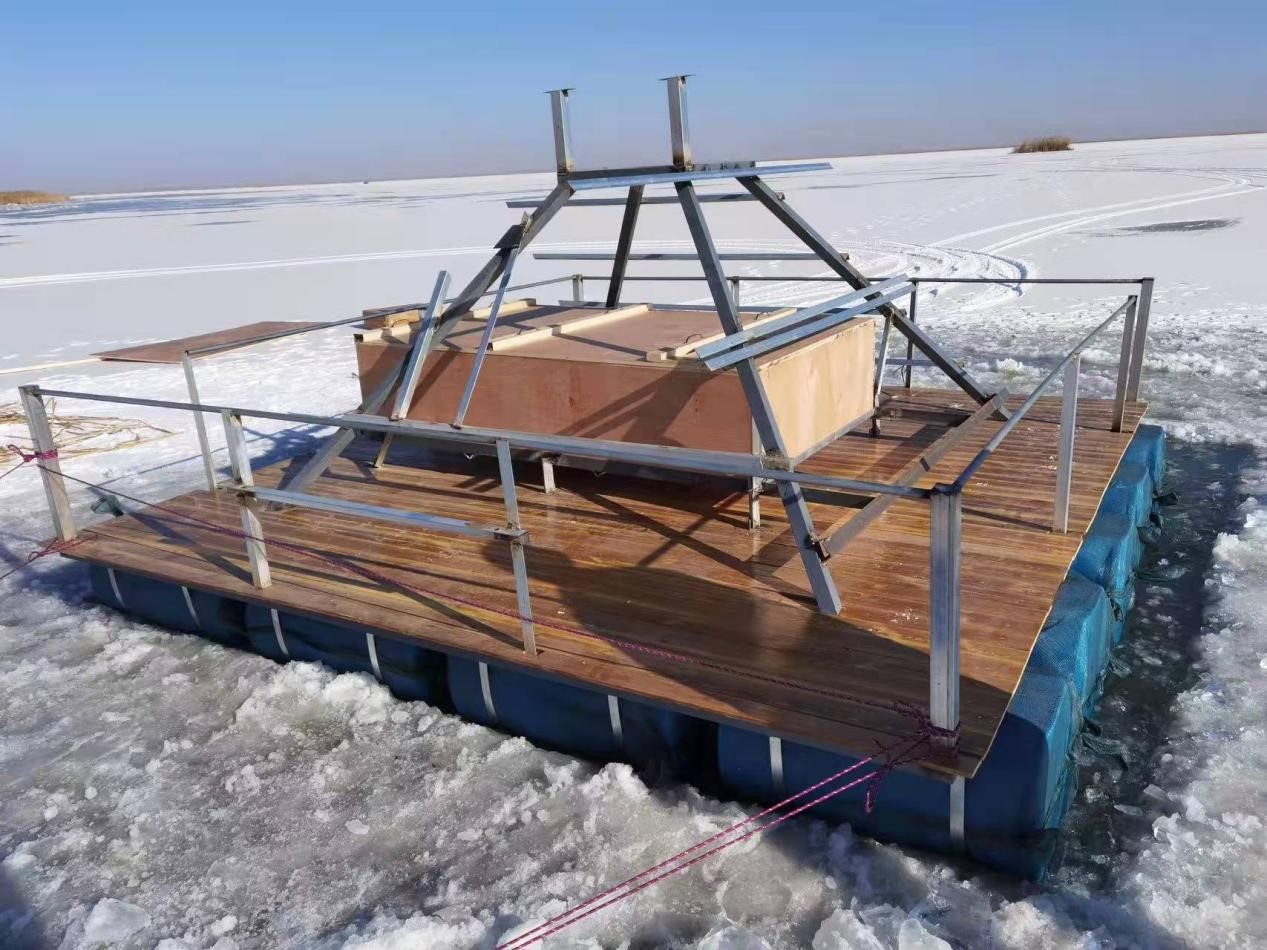 2022年1月13日,由大连理工大学海岸和近海工程国家重点实验室李志军教授主持的国家重点研发计划-政府间国际科技创新合作重点专项“气候变化背景下高原典型湖泊冰雪物理与冰封生态环境演化及机理研究(2019YFE0197600)”项目自在辽宁省盘锦市大洼区含章湖放置浮台之后,在内蒙古巴彦淖尔市乌拉特前旗境内的乌梁素海也成功放置,该浮台为“气-冰-水-泥”环境生态浮台,可以获取湖底底泥的泥温。乌梁素海是内蒙古高原典型湖泊,可以同含盐浅水湖泊和含盐海洋水体构成对比体系,形成湖泊冰封期“气-冰-水”环境与生态多参数监测系统的参考系。